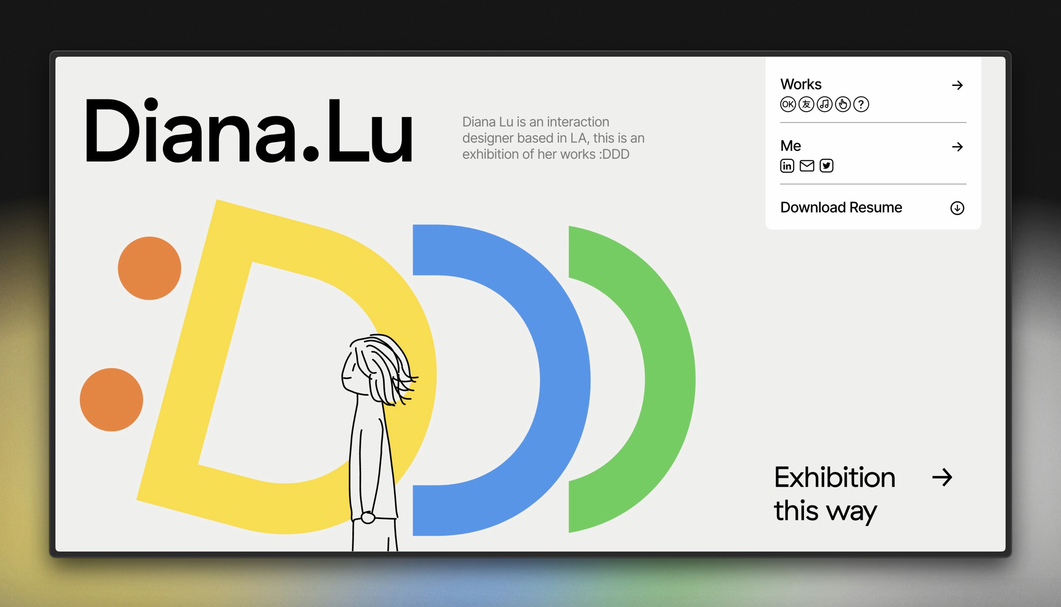 Diana Lu’s website is a delightful mix of creativity and usability, showcasing her skills as an interaction designer. The impressive use of horizontal scroll throughout the site offers a unique and fun browsing experience. Quirky graphics paired with charming animations add a playful touch, reflecting her artistic personality. This combination of innovative scrolling, cute visuals, and smooth animations makes her portfolio both memorable and enjoyable to explore.