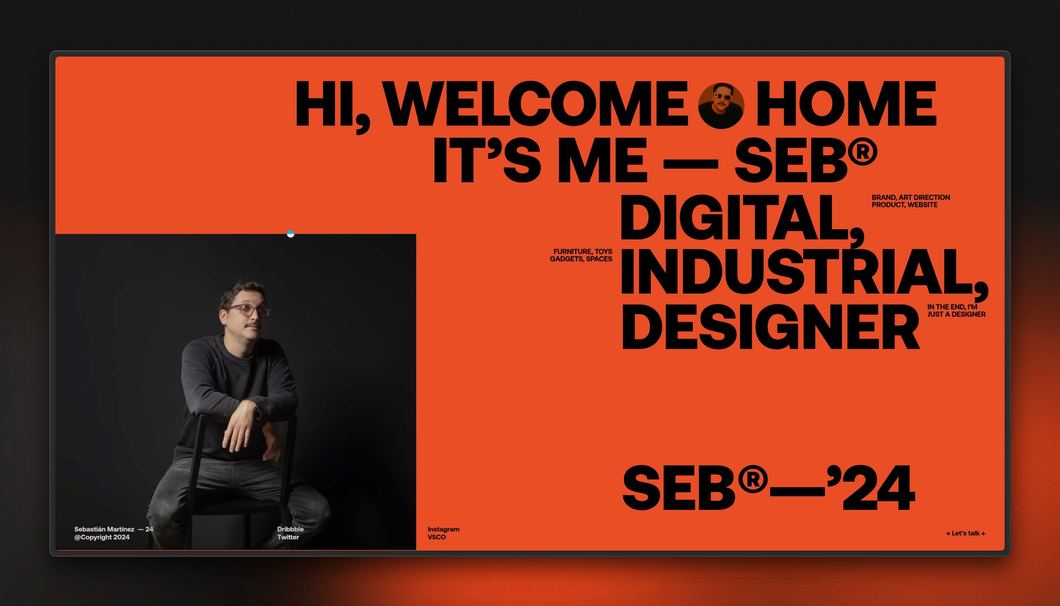 Sebastián Martínez’s portfolio website is a visually stunning showcase of his diverse design work. He uses high-quality images that you can move around the page to prominently feature his creations, providing a clear and engaging view of his portfolio. The site also includes a captivating loading state with bold text effects that automatically draw visitors’ attention.