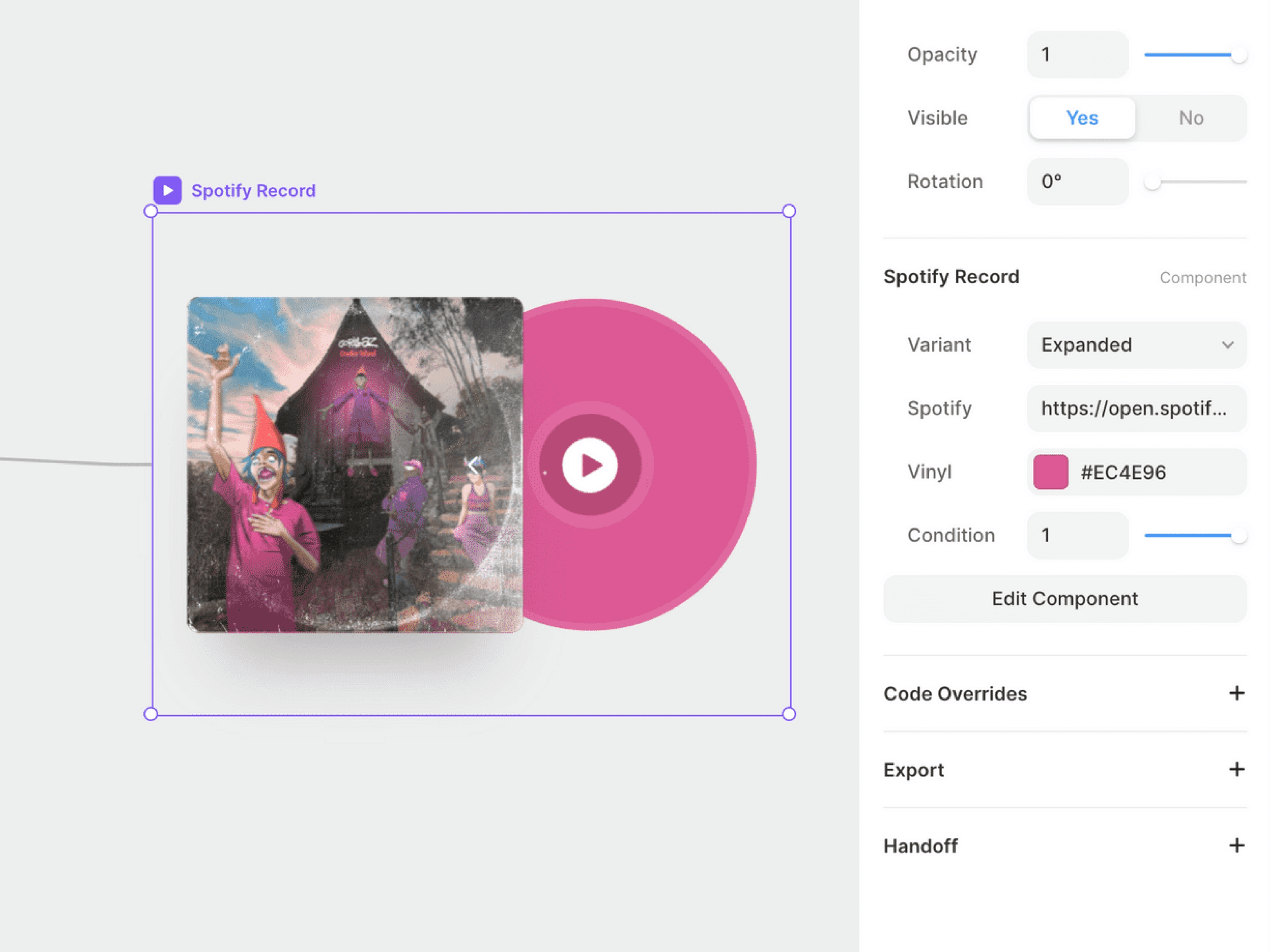 One of the great things about this component is that you can easily remix it to fit your website's specific needs. Simply visit the Spotify Records Framer media page and try it out yourself. You can tweak the colors, adjust the condition slider, and see how it looks in real time.