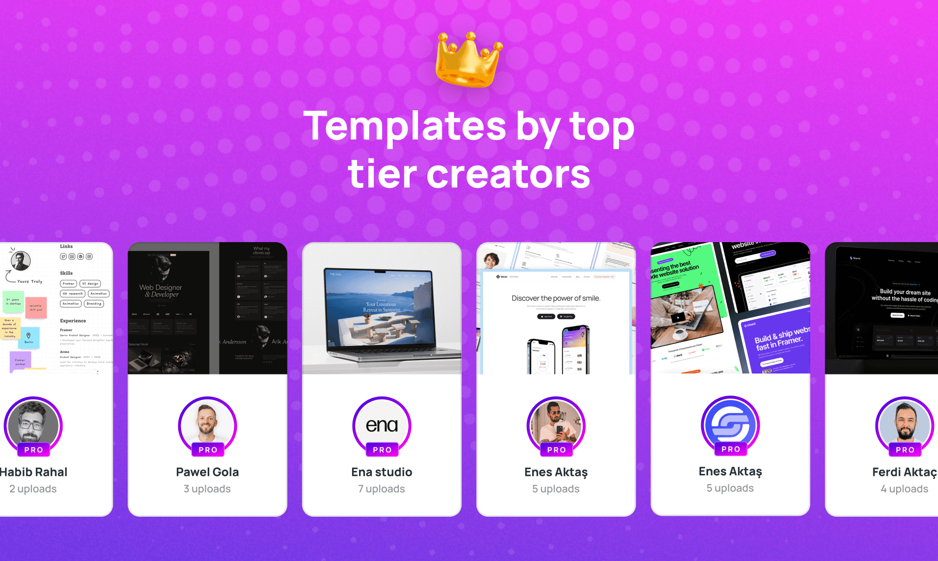 With this transition, we plan to continue our tradition of only accepting the cream of the crop. We’ll be maintaining a high-quality marketplace by letting in only the top 9% of premium template creators. This means when you browse our Framer marketplace, you can expect the best of the best.