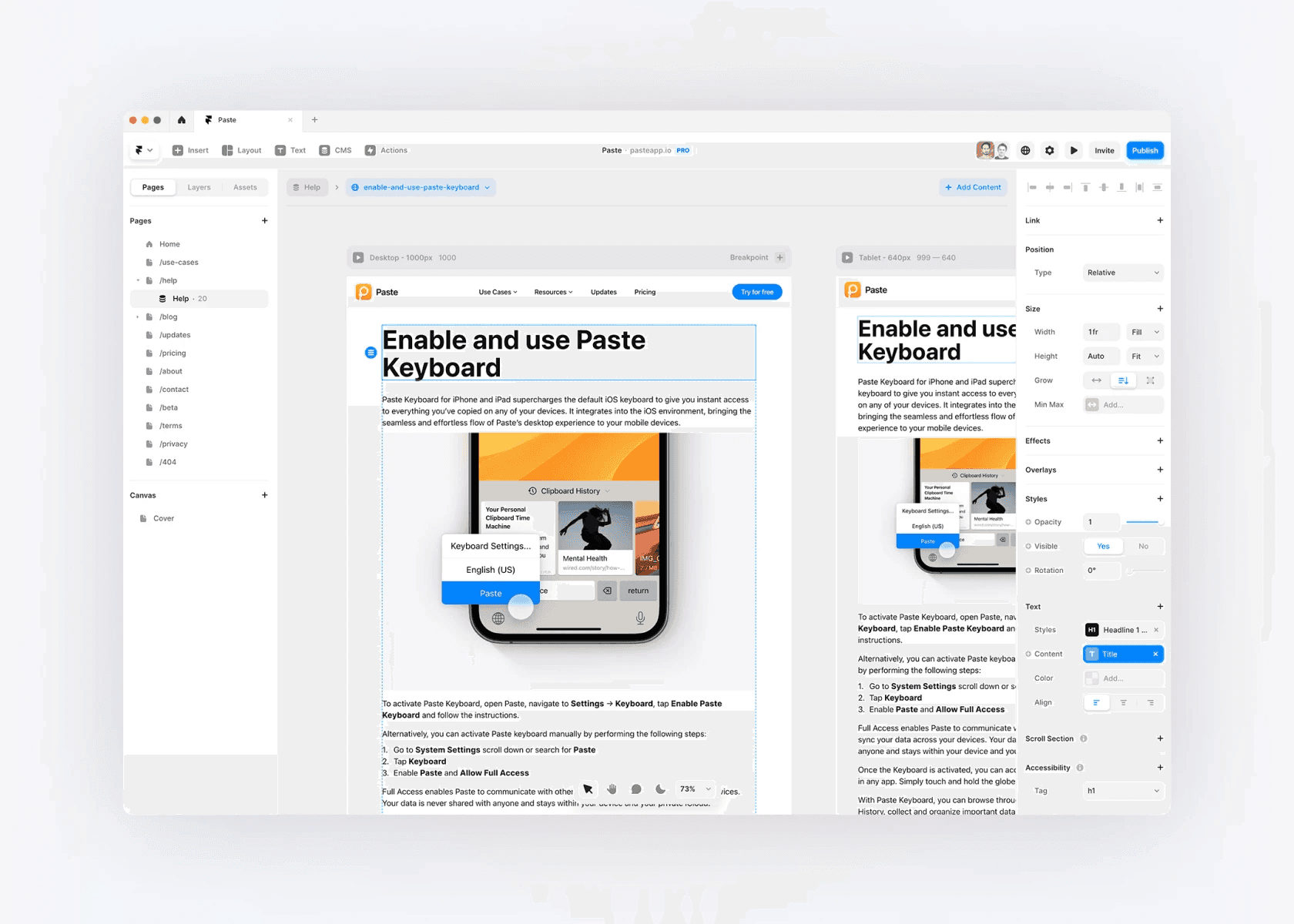 However, as Paste continued to evolve, there was a growing need to update their website to mirror the latest developments regularly. Despite the flexibility of their setup, it demanded a dedicated web developer to implement changes swiftly and with high quality, a resource that a small team, especially one focused on a native app, might not always have at their disposal. This led them to consider no-code solutions. After conducting some research, they decided to experiment with Framer.
