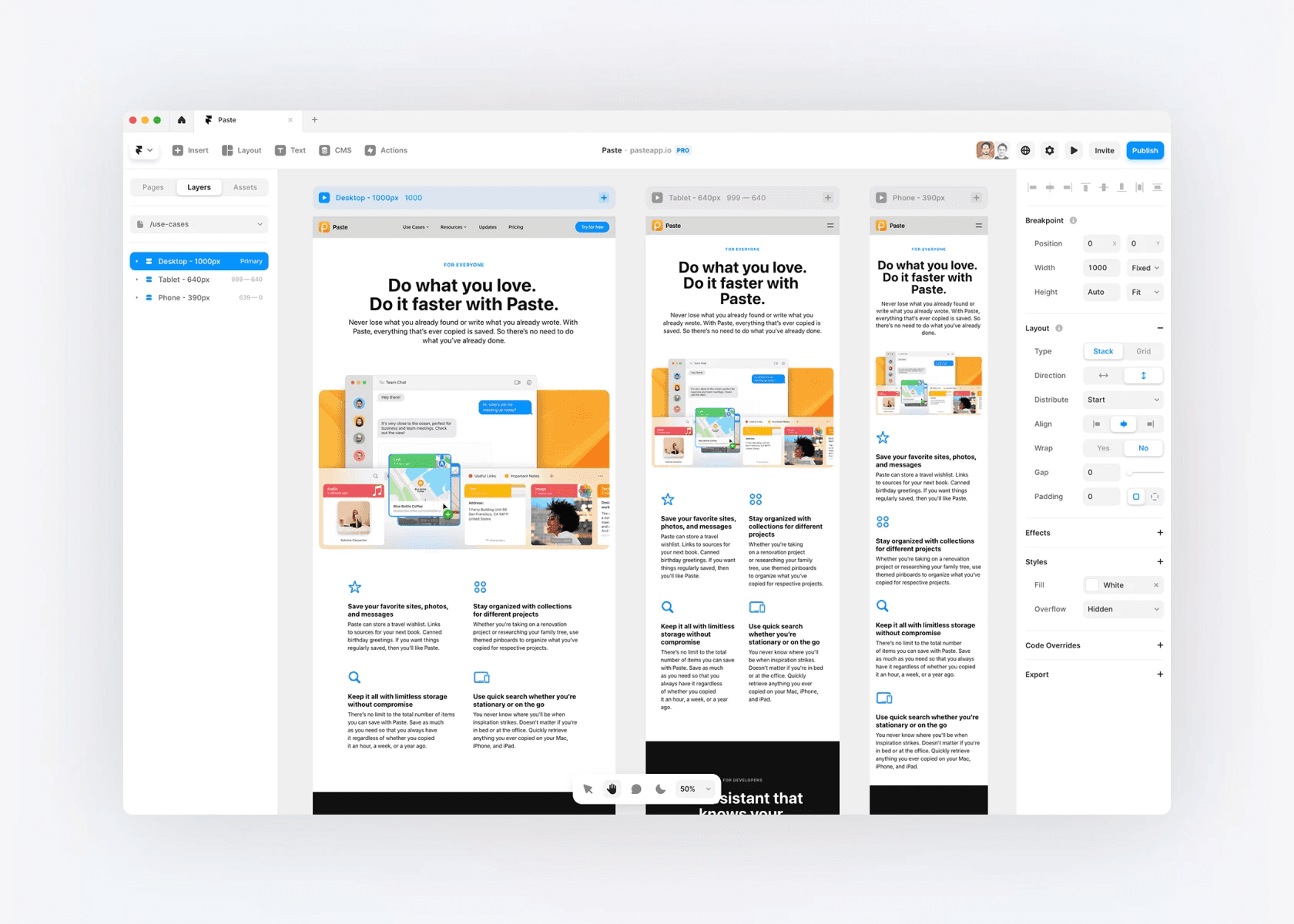 In the development of their website, they spared no effort in terms of design and animations, aiming to make every interaction as smooth as engaging with their product. This endeavor was far from simple; however, with the assistance of Framer, they were able to transform these ambitious concepts into reality. Paste is sharing their experience in hopes of illuminating the way for other teams that may be navigating similar web development hurdles.
