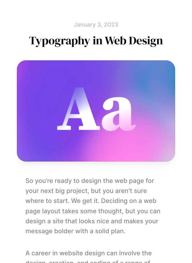 Typography plays a crucial role in web design as it helps to create a visual hierarchy and improves the readability of text on a website. It can also be used to convey a specific tone or brand personality. When choosing a typeface for a website, it's important to select a font that is easy to read on different screen sizes and devices.