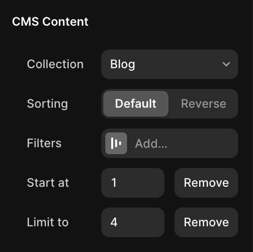 Limits allow you to set the maximum number of items displayed from a CMS collection, helping you control the amount of content shown to your users.