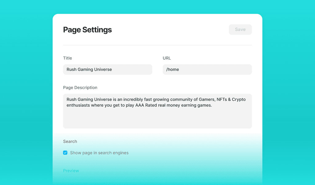 Give your page a title and description, and Framer handles optimizing for search engines.