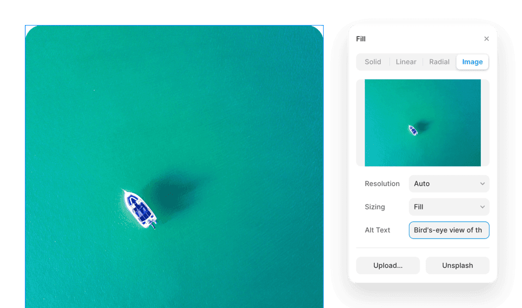 Framer UI showing an image fill