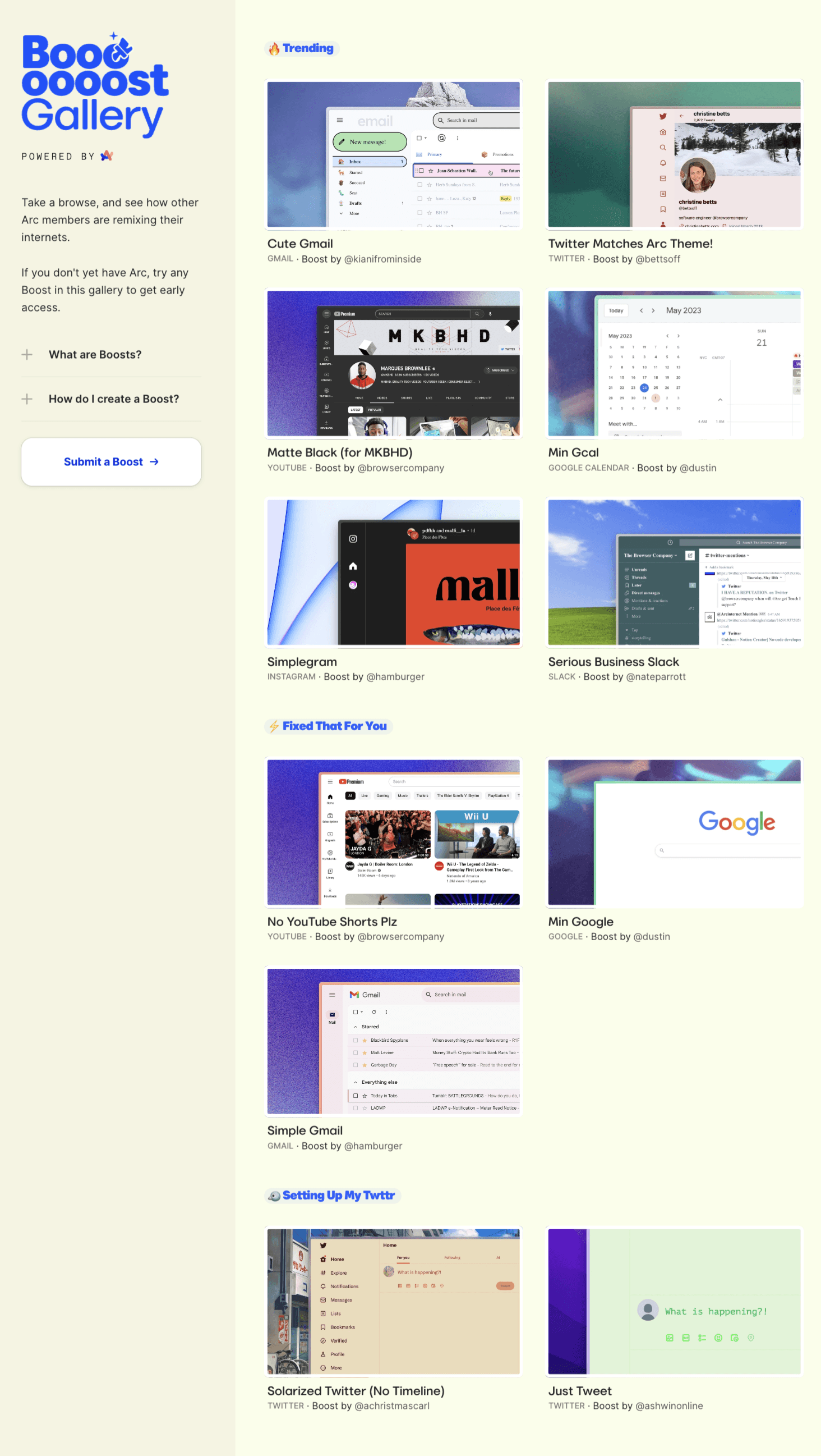 Boosts are a new way to edit and remix your internet, and share it with friends. Boosts are created inside Arc web browser.