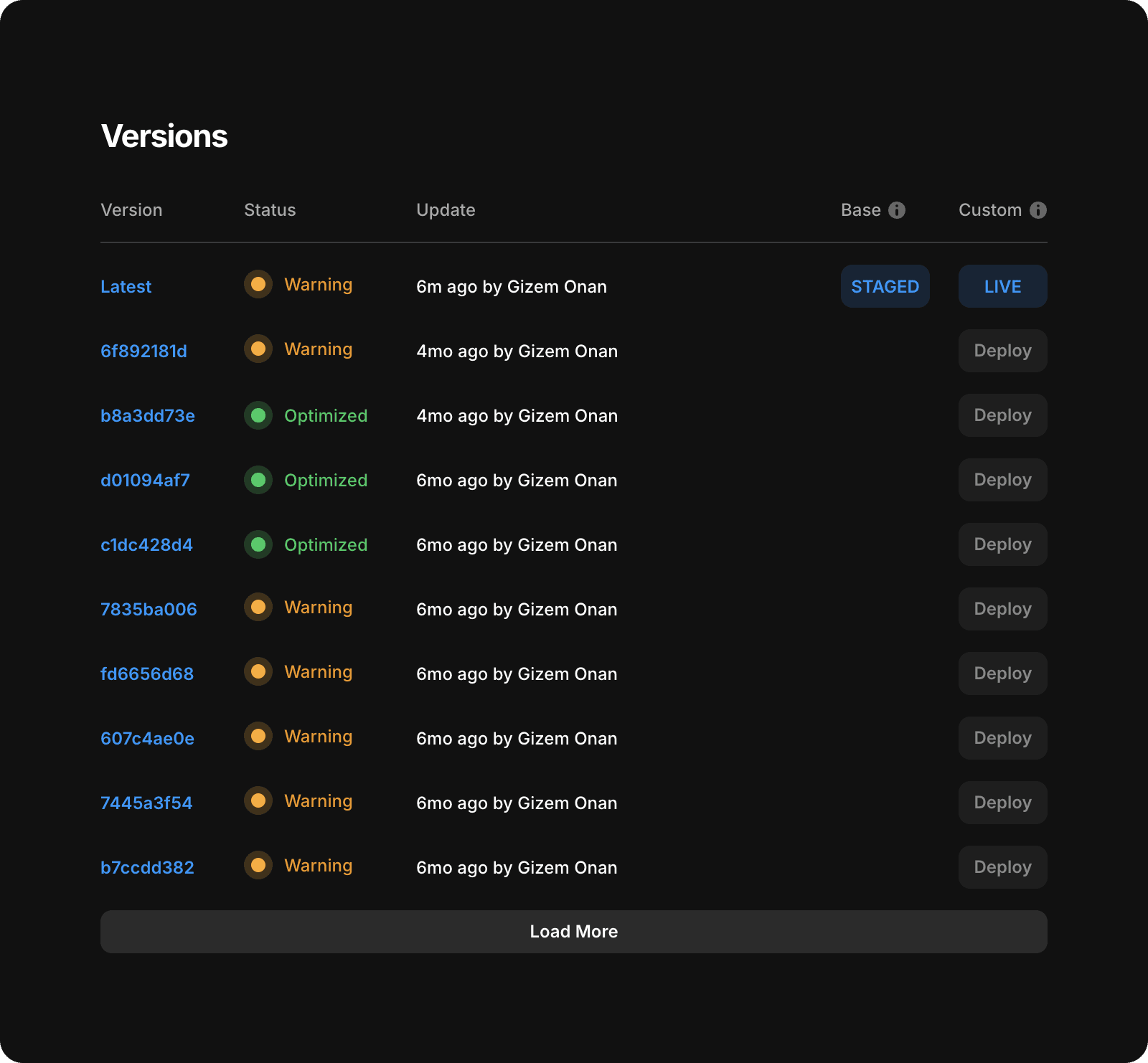 It will take you to the "Staging and Versions" page where you can see those warnings. Click on the “warning” under Status column to download the error file.