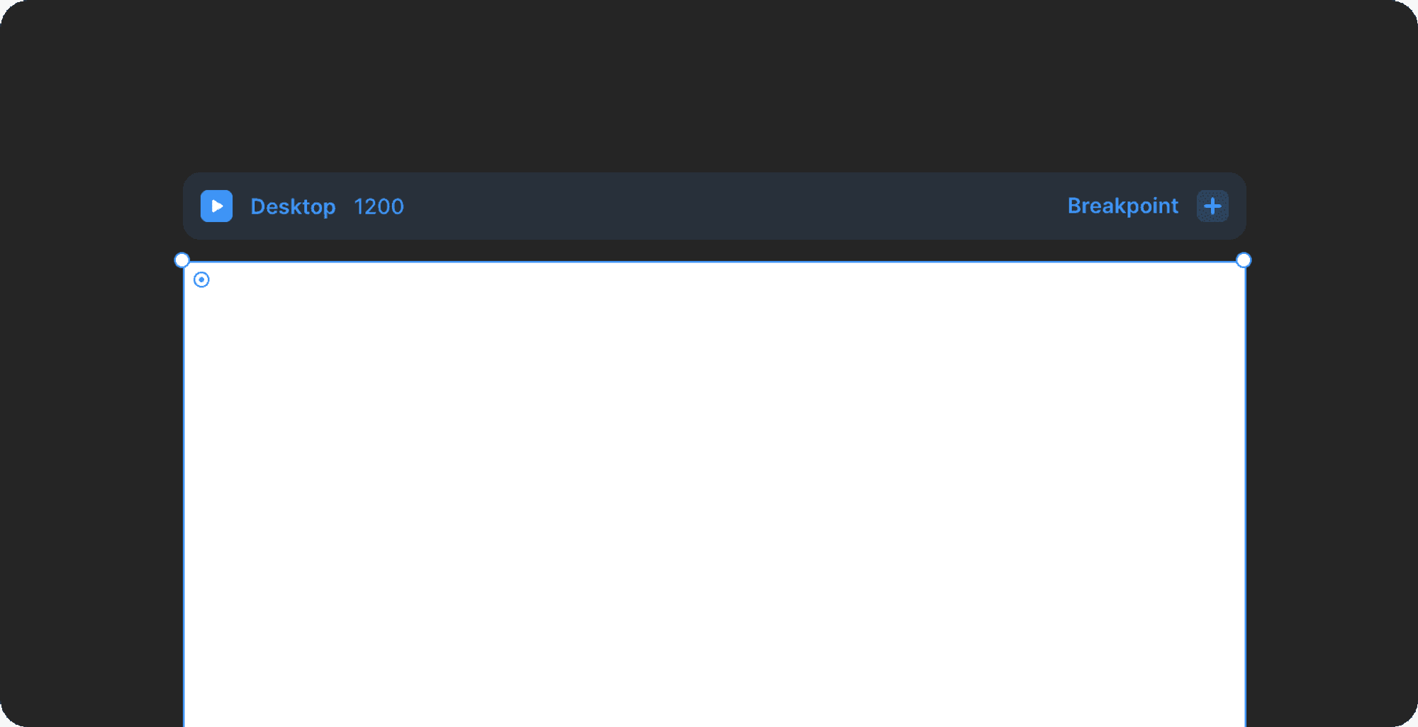 To preview a specific page or breakpoint, select the preview icon from any selection on your page. For example, if you want to check the Tablet breakpoint, select it on the Canvas, then click the preview icon. The preview will automatically open at the matching breakpoint width.