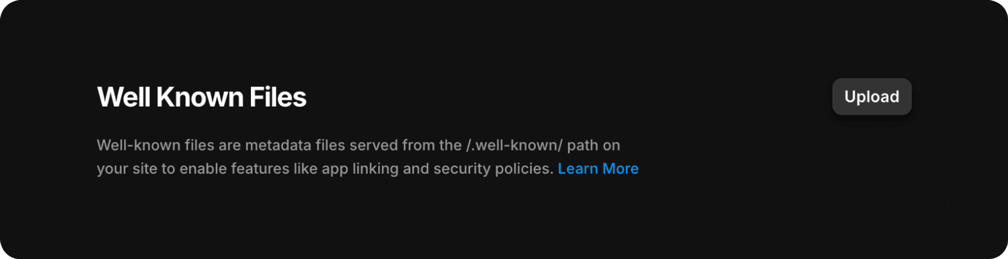 Well-known files enable you to add functionalities such as Apple app site association, Apple Pay, and Android link verification. They also support other use cases, including publishing a security.txt file, which provides contact information for reporting security vulnerabilities on websites.